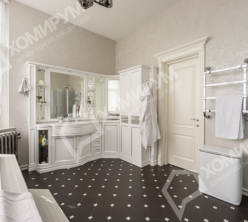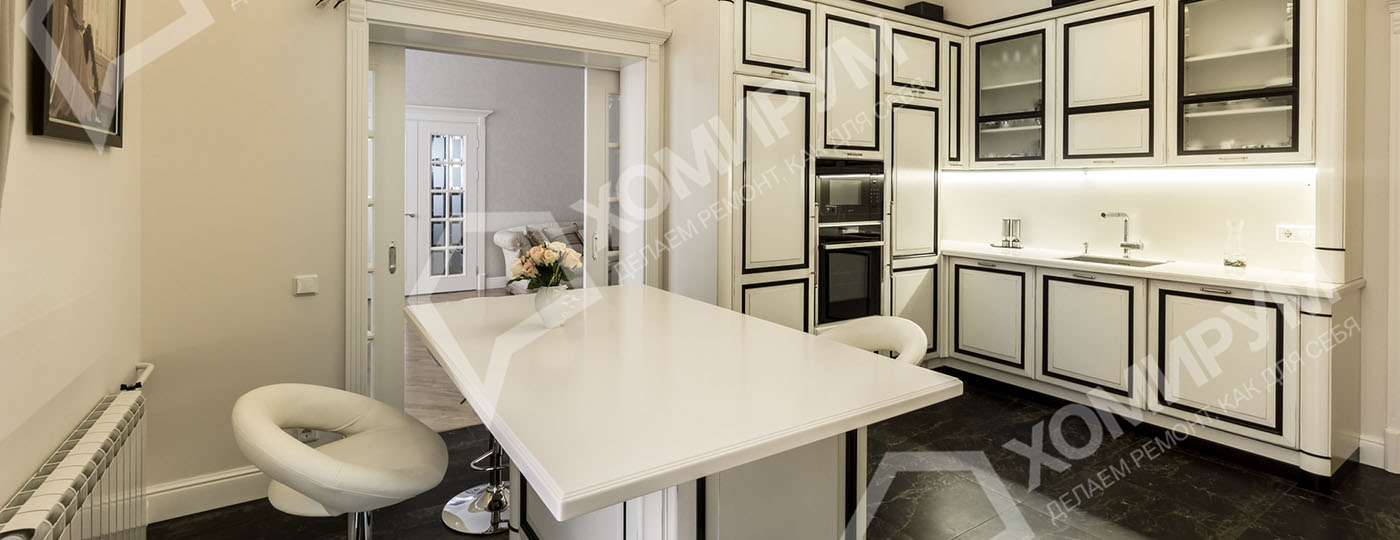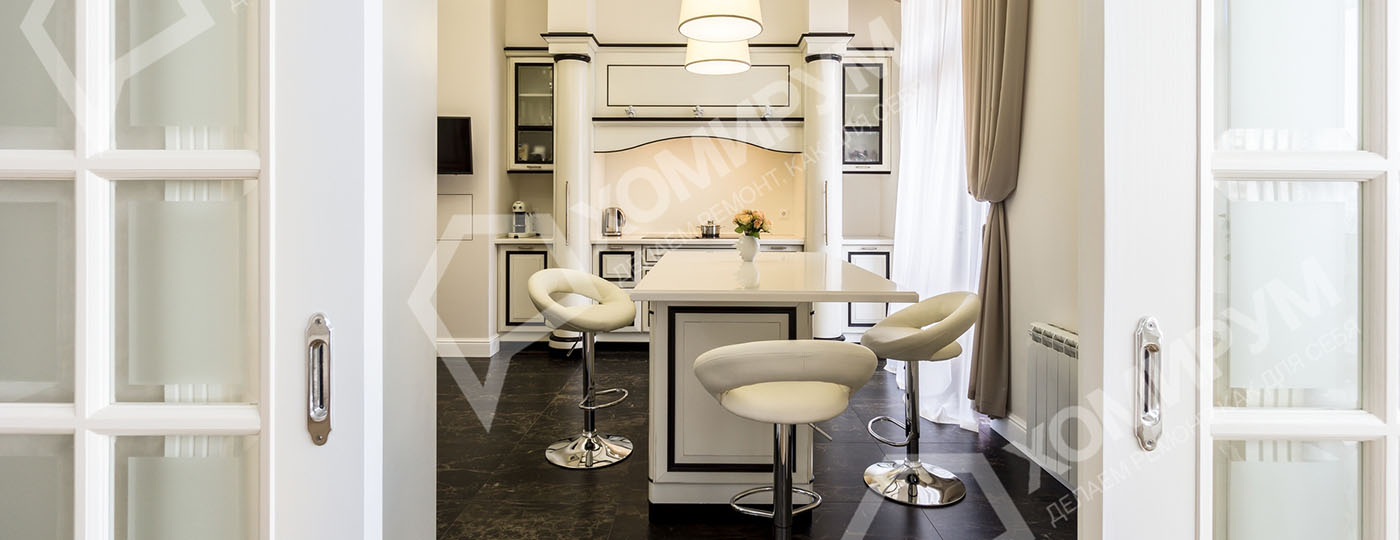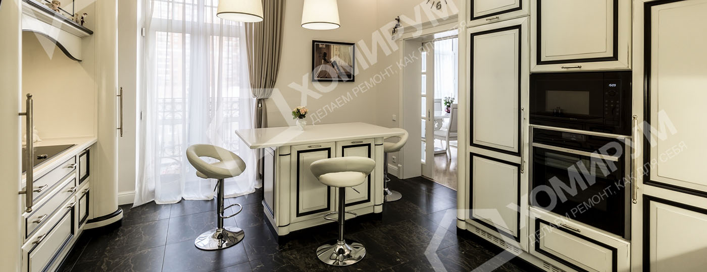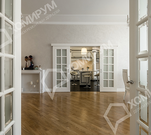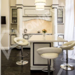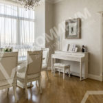 Сохранение планировки вторичного жилья в его первозданном виде, включая высоту потолков – таково было пожелание заказников. Следование принципам дворцового стиля: простор, много света и анфиладное решение пространства (ряд находящихся друг за другом комнат, двери которых расположены на одной оси) помогли создать классический интерьер с нотками современности.
