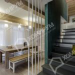 Дом приобретался именно из-за месторасположения коттеджного поселка. Планировка типовая и почти не соответствовала запросам заказчиков. Нашей задачей было максимально адаптировать дом под большую семью и образ жизни каждого ее члена. «Наращивание» площади дома и грамотная перепланировка позволили успешно решить эту проблему и подарить семье функциональное и уютное жилье.