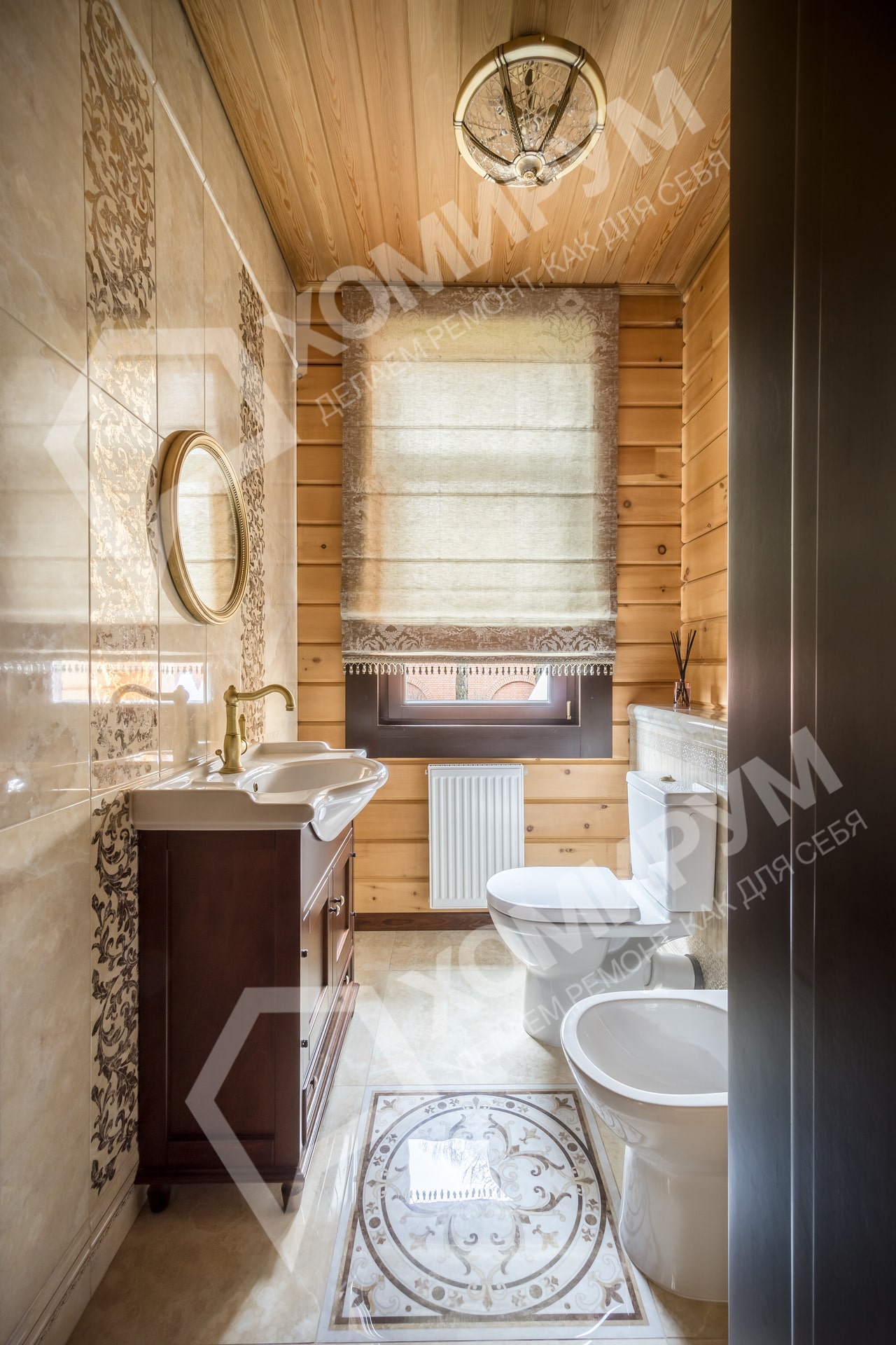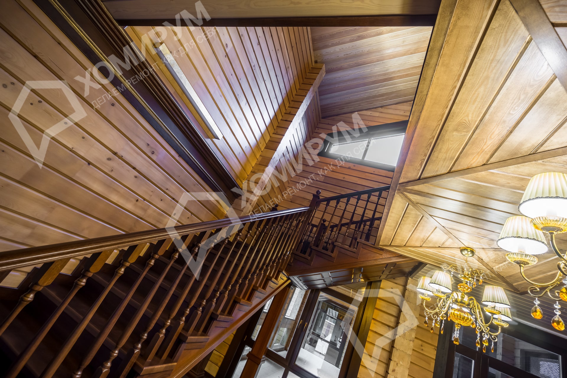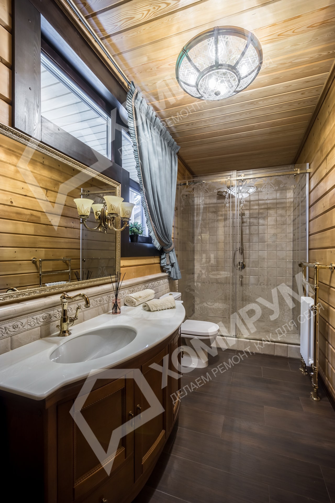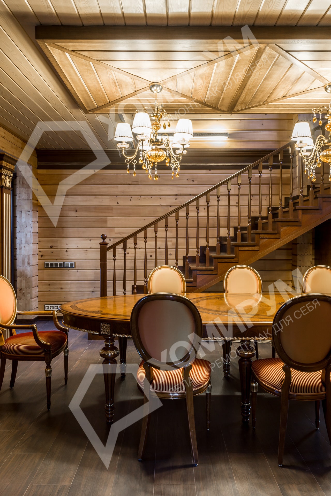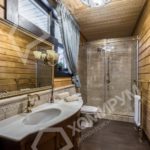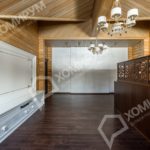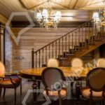Мы приступили к работе, когда все стены были возведены, включая внутренние перегородки, и смонтирована кровля. Сложность состояла в том, что планировочное решение было согласовано заказчиками на момент заказа коробки деревянного дома. На том этапе был учтен лишь набор помещений и поэтажное размещение. А вот пропорции комнат и их функциональное наполнение не были продуманы. Используя визуальные приемы, нам удалось скорректировать пропорции помещений и сделать жилье более уютными и функциональными.