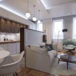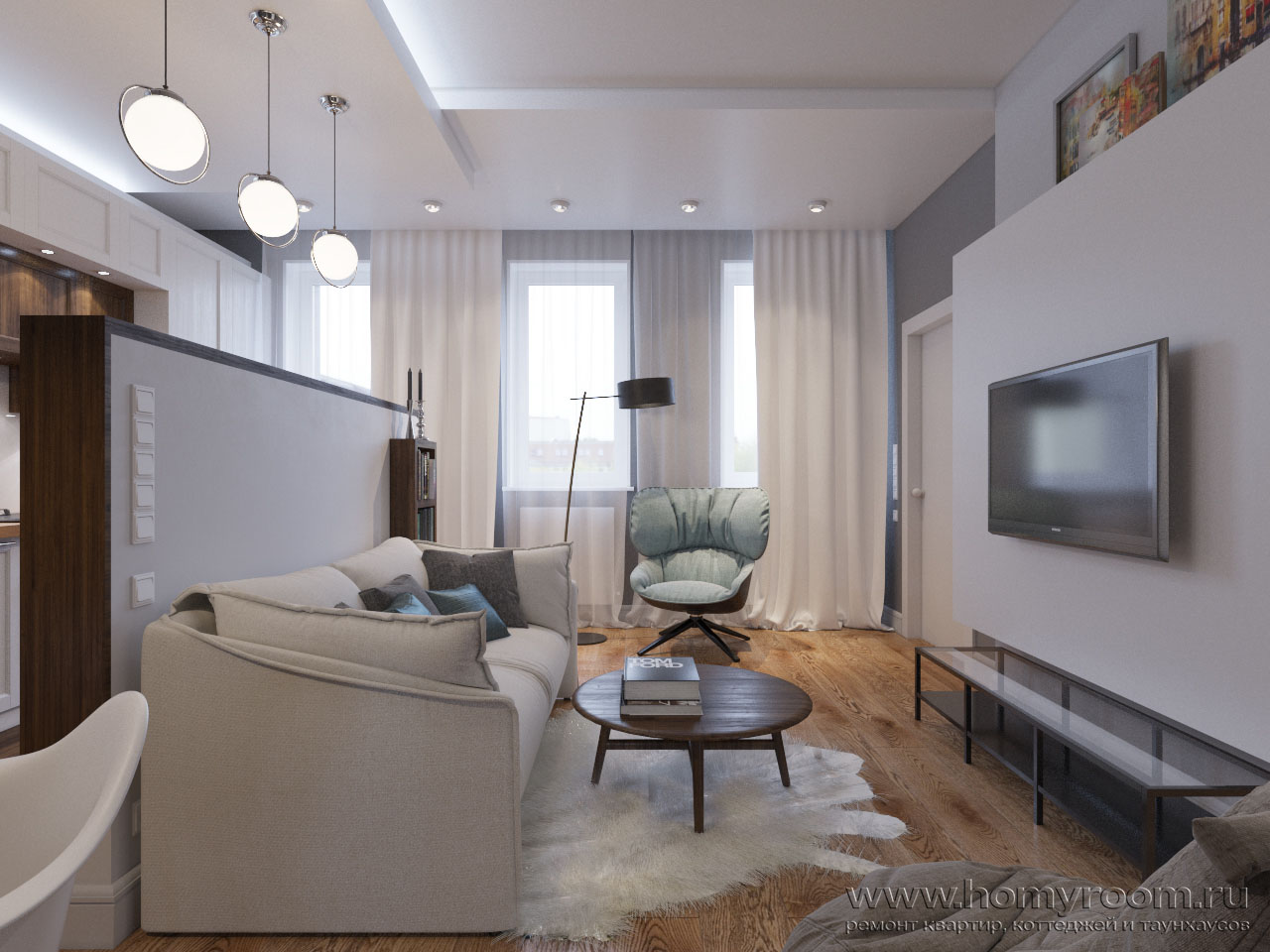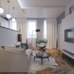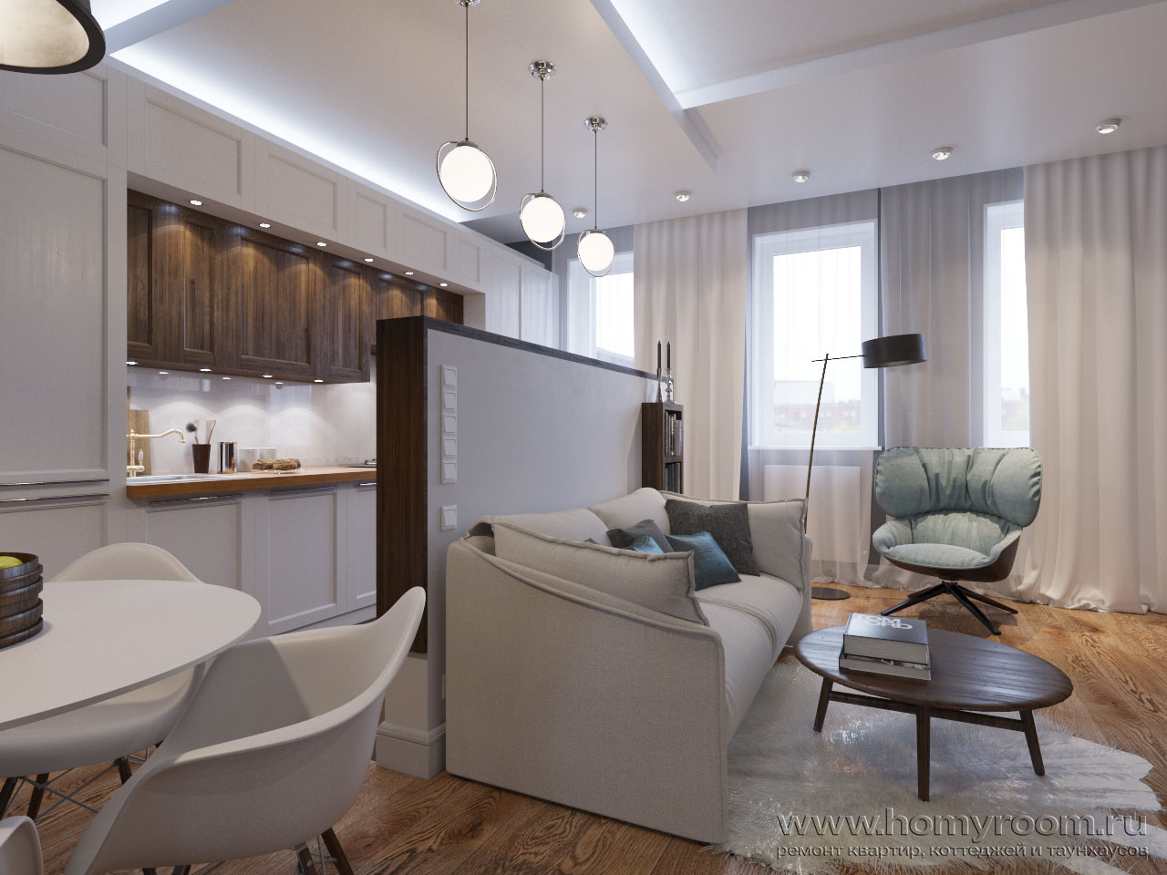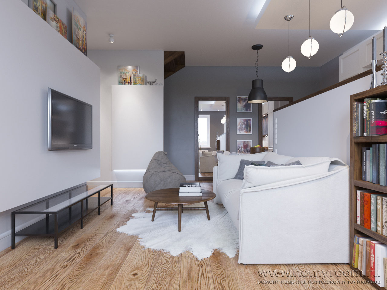 Грамотное архитектурное зонирование помещения с применением скандинавских стилистических ноток позволило нам создать уютное и функциональное жилье для молодой семьи.