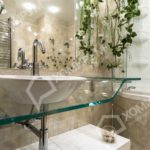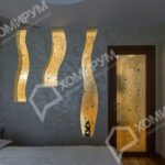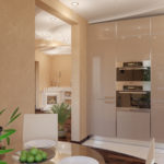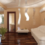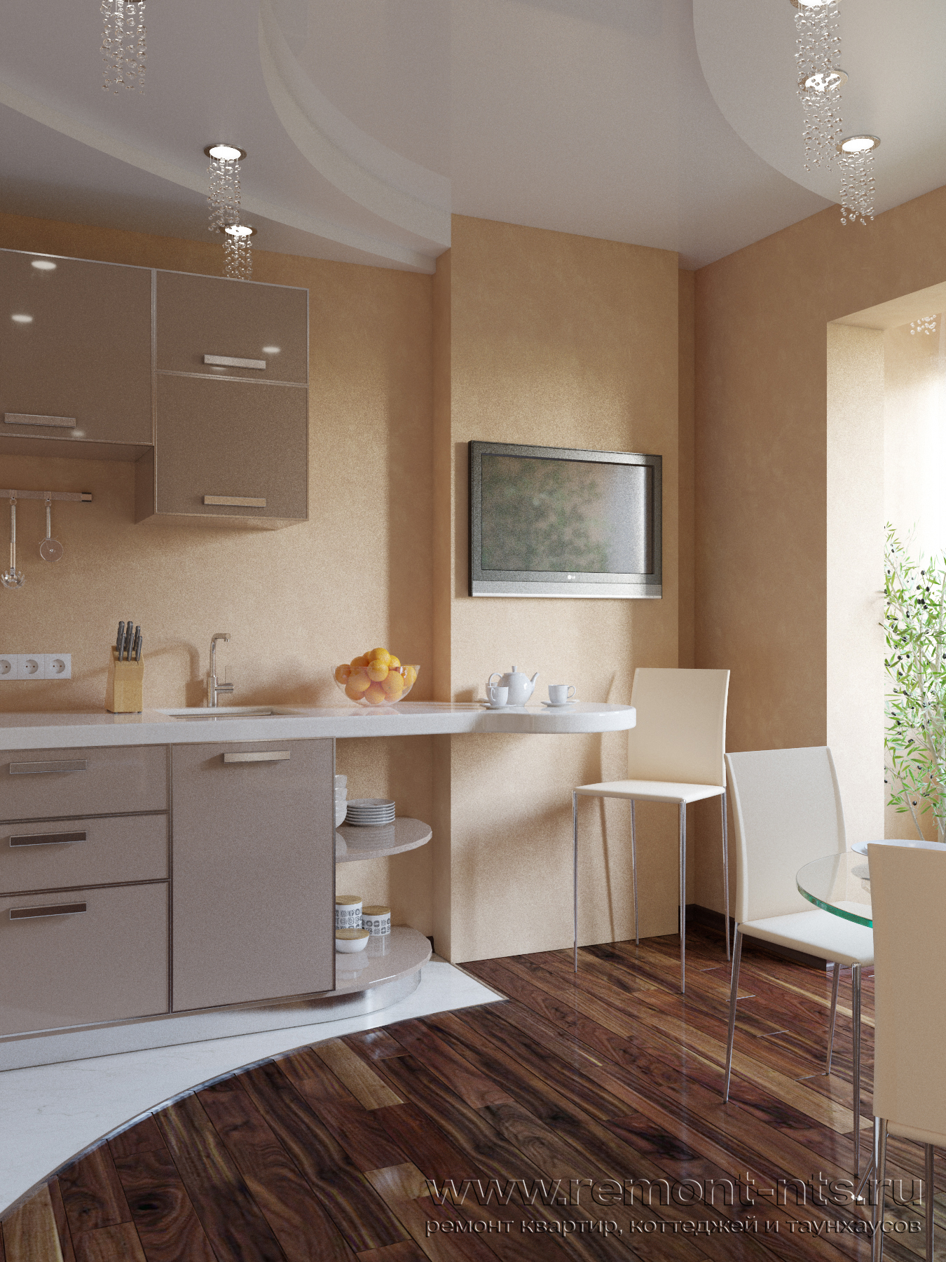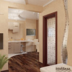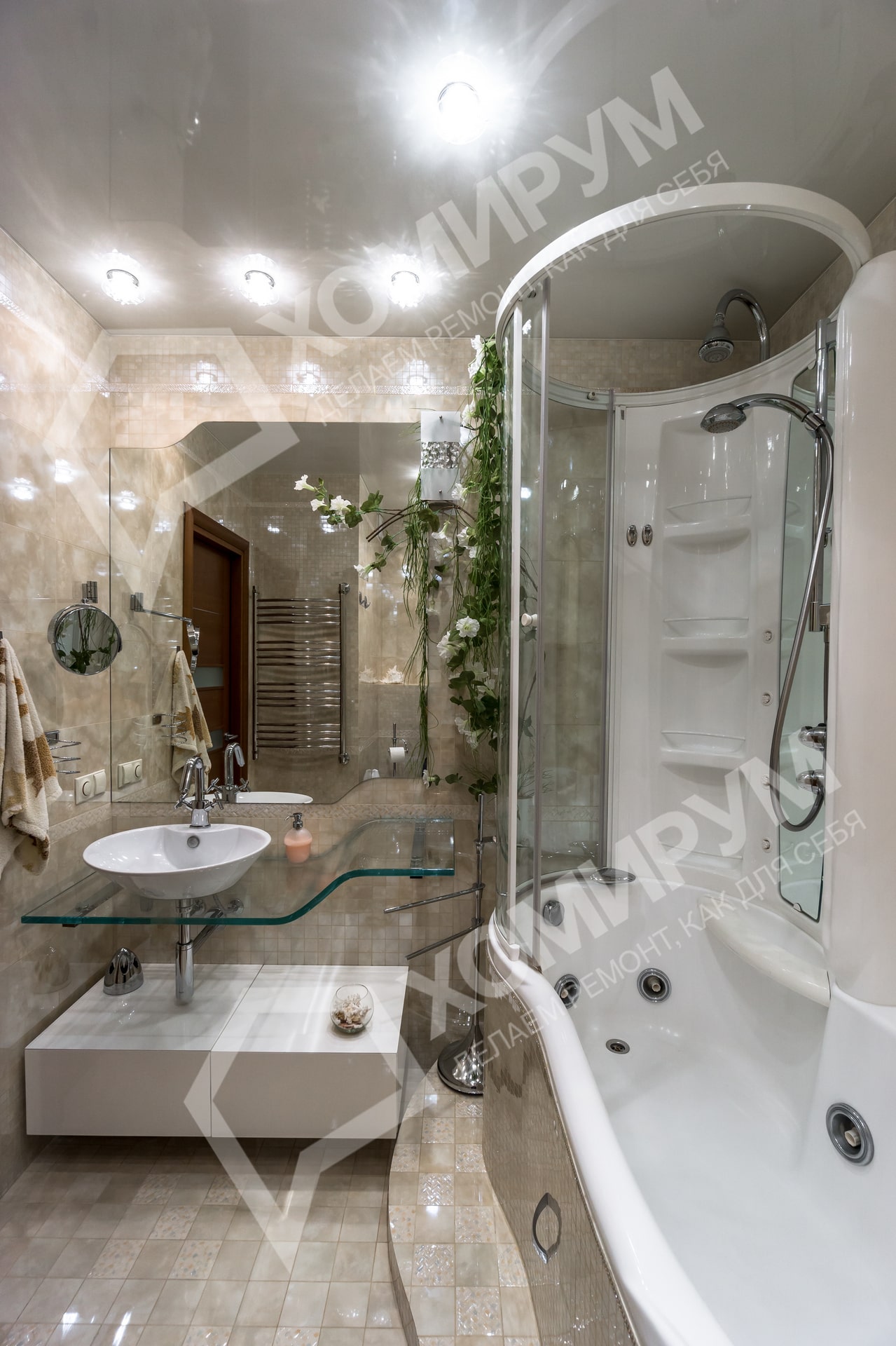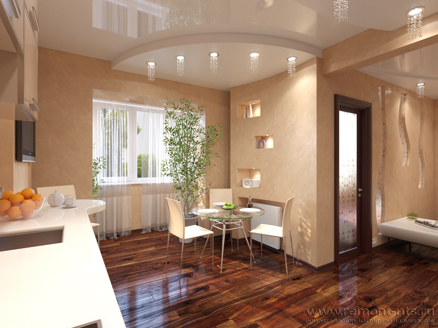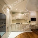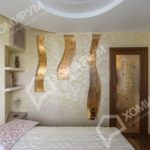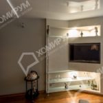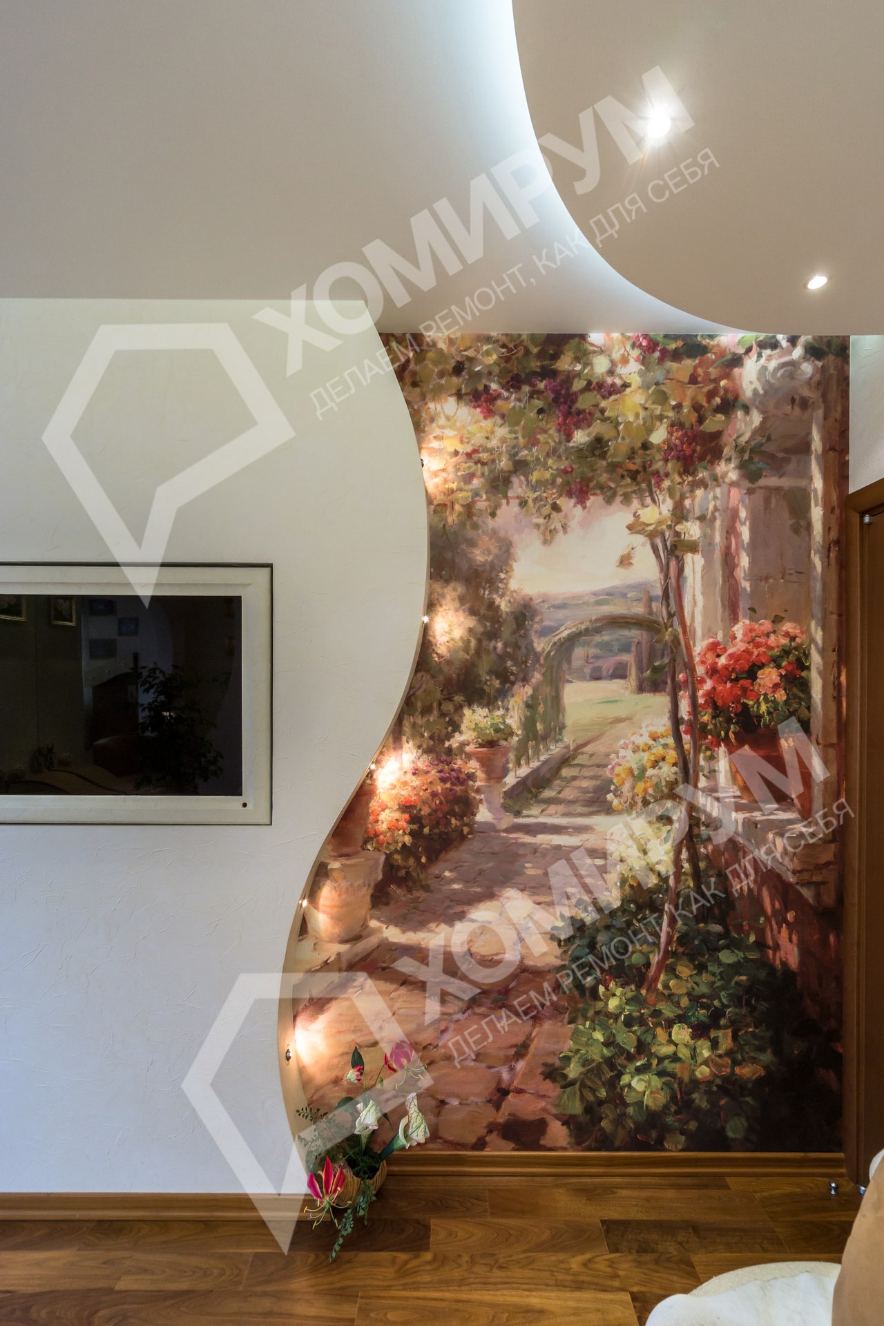Грамотная перепланировка квартиры и применение дизайнерских приемов (использование зеркальных вставок и витражных стекол, потолочные радиусные линии, перетекающие из комнаты в комнату и др.) позволили нам значительно увеличить объем квартиры, создав единый стиль проектируемого помещения.